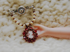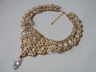 +++ティアドロップのチョーカー+++ 2006.4.21 lillaさんへ 以前に作ったものなのですが…。 「ドレスで写真を撮りたい」と聞いていたので プレゼントさせてもらいました☆ これは…技術はさ程必要ではないのですが 根気の要る作品でした(笑) マウスオンで着用時の画像が観られます。